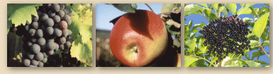 - Holunder: Seit 1991 beschäftigen wir uns neben Wein- und Obstbau auch mit dem Holunderanbau. Der Holunderstrauch ist eine seit Jahrhunderten bewährte Heilpflanze. In der Pharmazie finden Beeren, Blüten und Blätter Verwendung. Im Lebensmittelbereich werden hauptsächlich die Beeren verarbeitet, zu Säften, Marmelade, Gelee und Farbstoffe.